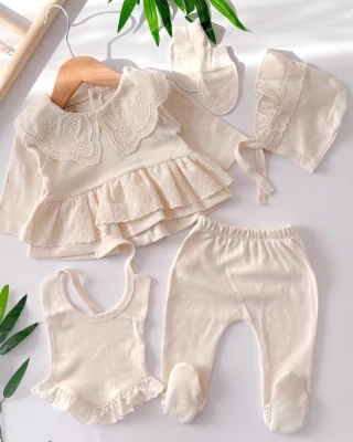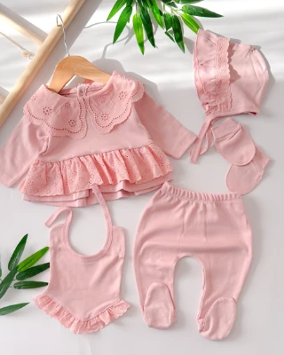 Asil güpür fisto desen mevsimlik penye yenidoğan 5li set Meva Baby Bebek ve Çocuk Giyim | Meva Baby | mevababykids.com