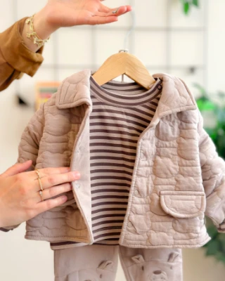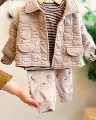 Ayıcık kabartma önden çıtçıt ceketli çizgili sweatli mevsimlik 3lü takım Meva Baby Bebek ve Çocuk Giyim | Meva Baby | mevababykids.com