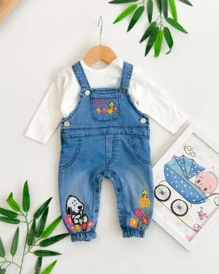 • Baby snoppy nakışlı kız kot salopet