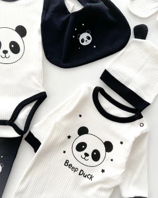 Beep duck panda baskılı fitilli kumaş 6 parça set Meva Baby Bebek ve Çocuk Giyim | Meva Baby | mevababykids.com