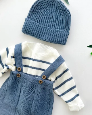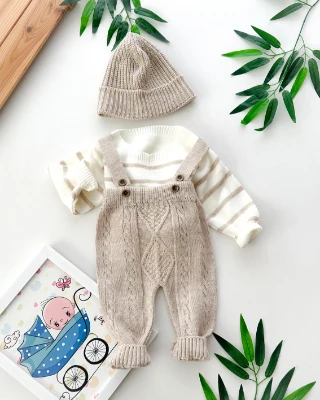 Burgu örgü salopet pantolonlu örme şapkalı triko kışlık 3 parça takım Meva Baby Bebek ve Çocuk Giyim | Meva Baby | mevababykids.com