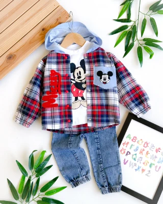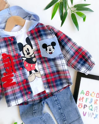 Cepte fare punch çıtçıt gömlekli kapüşonlu mevsimlik 3 parça takım Meva Baby Bebek ve Çocuk Giyim | Meva Baby | mevababykids.com