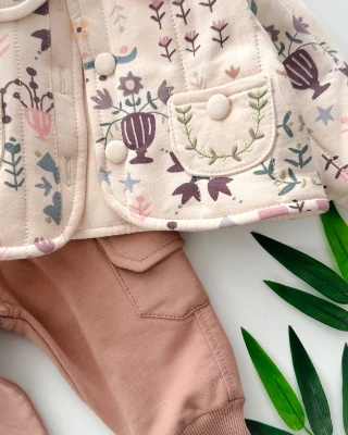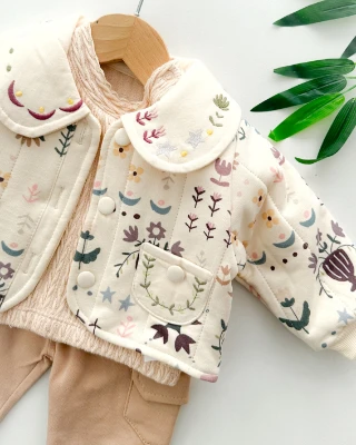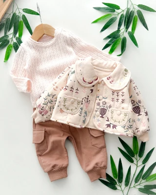 Dal ve zarif çiçek işleme ceketli kışlık 3 parça takım Meva Baby Bebek ve Çocuk Giyim | Meva Baby | mevababykids.com