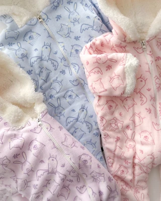 Dallar ve hayvanlar desen polar içi kürklü kapüşonlu boydan fermuarlı kışlık tulum Meva Baby Bebek ve Çocuk Giyim | Meva Baby | mevababykids.com