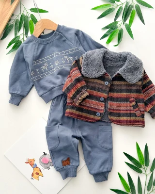 Ekose desen içi ve yakası kürklü montlu kışlık 3 parça takım Meva Baby Bebek ve Çocuk Giyim | Meva Baby | mevababykids.com