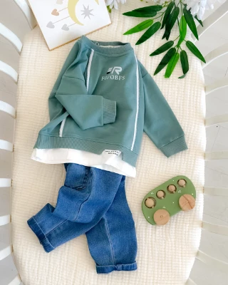 Fermuar detay basıc kot pantolonlu mevsimlik 2li erkek bebe takım