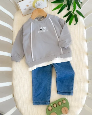 • Fermuar detay basıc kot pantolonlu mevsimlik 2li erkek bebe takım