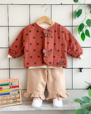 Fiyonk çıtçıt detay gabardin ceketli mevsimlik 3 lü takım Meva Baby Bebek ve Çocuk Giyim | Meva Baby | mevababykids.com