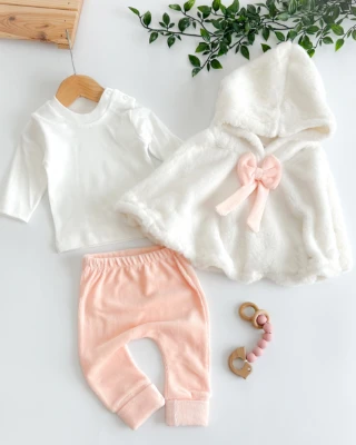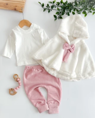 Fiyonk peluş pançolu kadife taytlı kışlık 3lü takım Meva Baby Bebek ve Çocuk Giyim | Meva Baby | mevababykids.com
