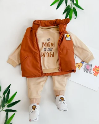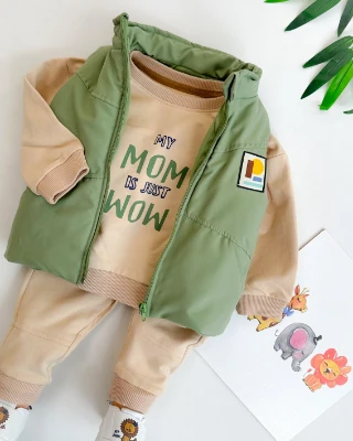 Geometrik şekil armalı şişme yelekli mevsimlik 3 parça takım Meva Baby Bebek ve Çocuk Giyim | Meva Baby | mevababykids.com