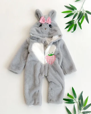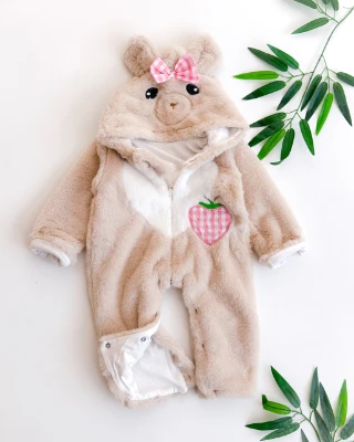 Kalp çilekli şirin hayvan surat kapüşonlu içi astarlı fermuarlı peluş kışlık tulum Meva Baby Bebek ve Çocuk Giyim | Meva Baby | mevababykids.com