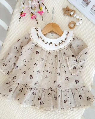 Kalp dallar nakış yaka detay astarlı mevsimlik kumaş bayramlık elbise Meva Baby Bebek ve Çocuk Giyim | Meva Baby | mevababykids.com