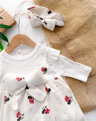 Kız farecik desen salopet jile görünümlü astarlı mevsimlik elbise Meva Baby Bebek ve Çocuk Giyim | Meva Baby | mevababykids.com