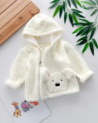 Kulaklı bear face detaylı yandan fermuarlı kapüşonlu peluş hırka Meva Baby Bebek ve Çocuk Giyim | Meva Baby | mevababykids.com