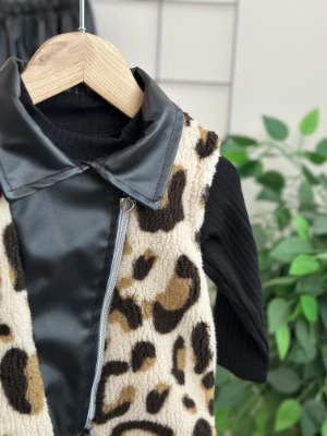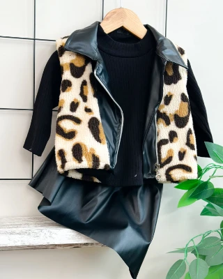 • Leopar desen deri etek detaylı hırkalı premium kız 3lü takım