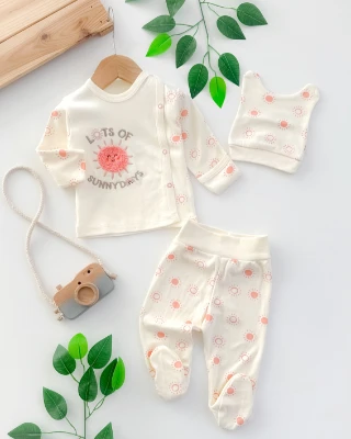 Lots of Sunny days yandan çıtçıtlı kendinden eldivenli yenidoğan 3lü takım Meva Baby Bebek ve Çocuk Giyim | Meva Baby | mevababykids.com