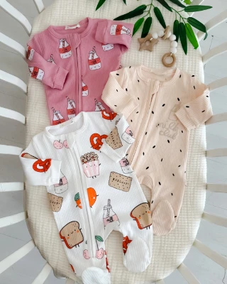 • Milk clup boydan fermuarlı 3lü kız bebe tulum set
