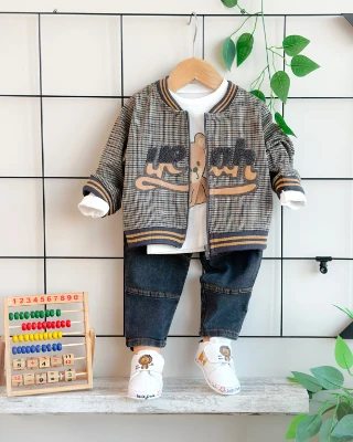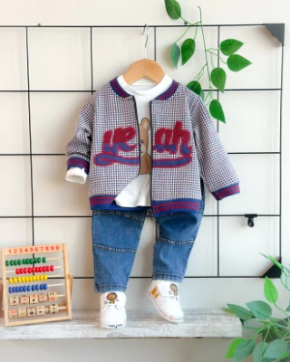 Minik pötikareler desen hırkalı mevsimlik 3 parça takım Meva Baby Bebek ve Çocuk Giyim | Meva Baby | mevababykids.com