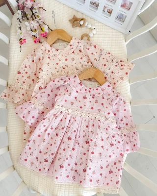 Minik renkli çiçekler ispanyol kol detay astarlı mevsimlik kumaş bayramlık elbise Meva Baby Bebek ve Çocuk Giyim | Meva Baby | mevababykids.com