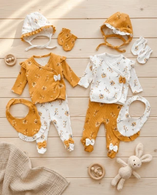 • Pamukçuklar detaylı premium 5li kız yenidoğan set