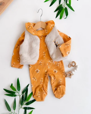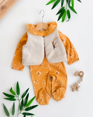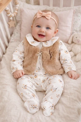 • Pamukçuklar detaylı tulum premium kürk detaylı kız bebe tulum