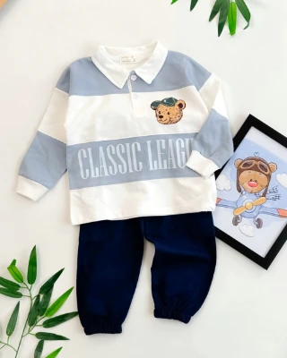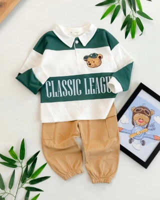 • Polo yaka çizgili kargo pantolonlu mevsimlik 2li çocuk takım