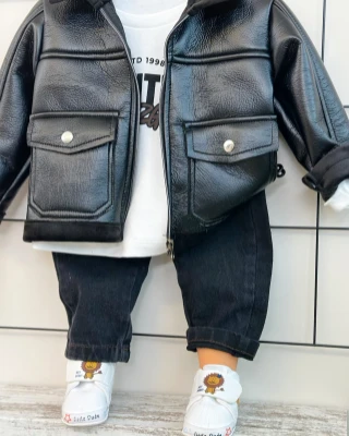• Premium Stil İçi kadife deri ceketli tarz 3lü erkek takım
