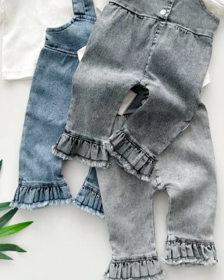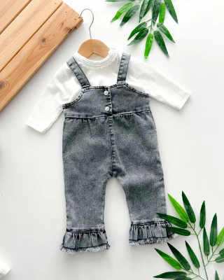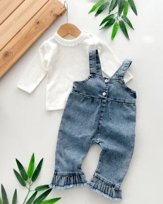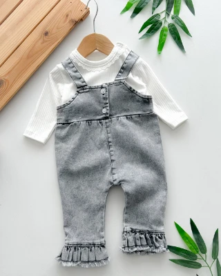 • Püskül paça detaylı raporlu sweat 2li kız salopet takım