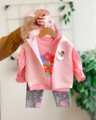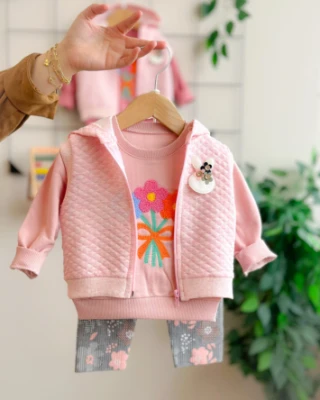 Renkli papatya ve kurdela punch kapüşon yelekli mevsimlik 3 parça takım Meva Baby Bebek ve Çocuk Giyim | Meva Baby | mevababykids.com