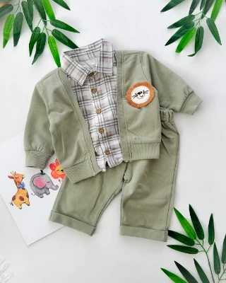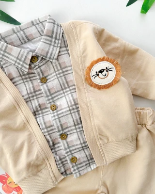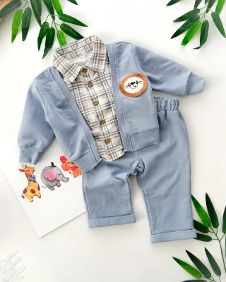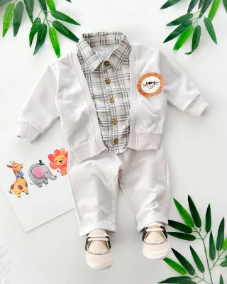 Sahte kareli gömlek görünümlü aslan armalı mevsimlik2 parça takım Meva Baby Bebek ve Çocuk Giyim | Meva Baby | mevababykids.com