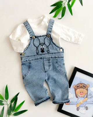 Şaşkın fare nakışlı mevsimlik kot salopet takım