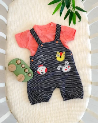 • Sevimli hayvanlar salopetli yazlık 2li bebe takım