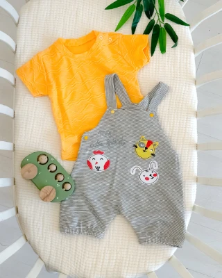 Sevimli hayvanlar salopetli yazlık 2li bebe takım