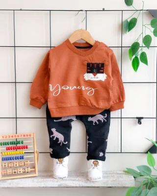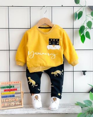 Sevimli tiger baskılı omuzdan çıtçıtlı mevsimlik 2 parça takım Meva Baby Bebek ve Çocuk Giyim | Meva Baby | mevababykids.com