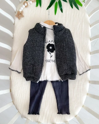 Simli şişme yelekli 3lü kız bebe takım