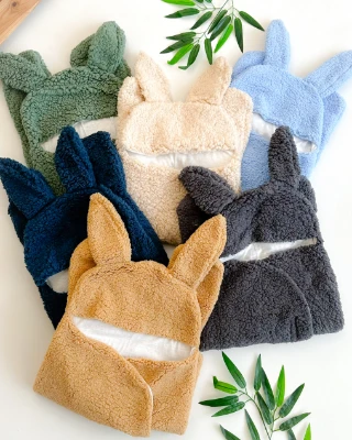 Tavşan kulaklı cırtcırtlı içi astarlı peluş bebek kundağı (0-6 ay uyumlu)