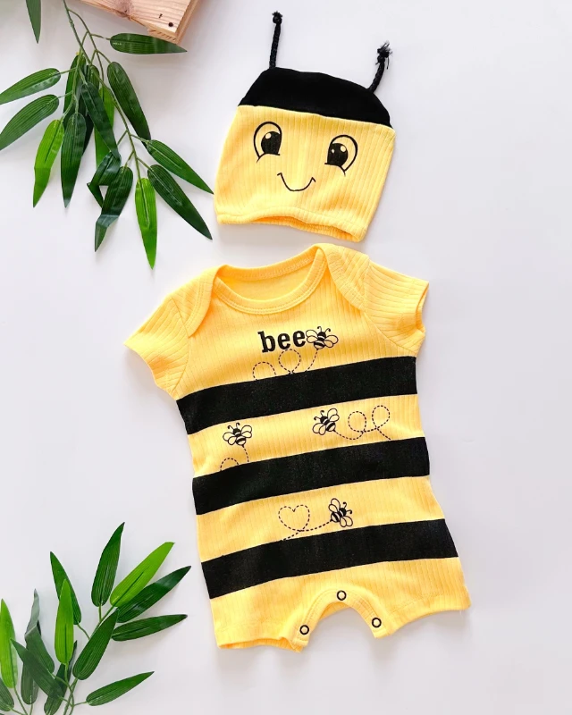 Meraklı tavşan nakış yanları fistolu alttan çıtçıtlı mevsimlik boneli tulum set