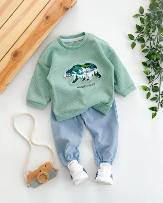 Wilderness ayıcık kabartma omuzdan çıtçıtlı mevsimlik 2li takım Meva Baby Bebek ve Çocuk Giyim | Meva Baby | mevababykids.com