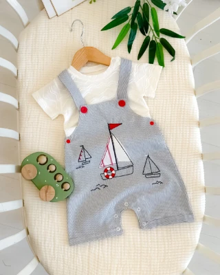• Yelkenli nakışlı yazlık erkek salopet takım