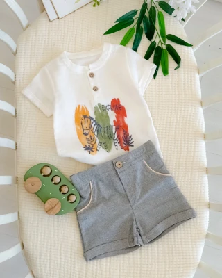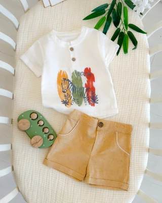 • Zebra desen müslin tişörtlü yazlık 2li bebe takım